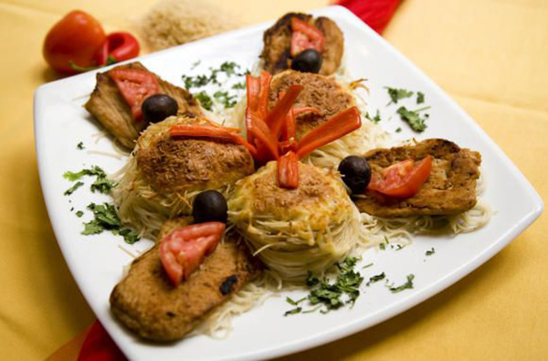 5. تخلط الخضر مع الجبنة السائلة. وبواسطة هذا المزيج، تحشى كرات الشعيرية، ثم توضع في صينية مخصصة للفرن، وتوزع جبنة “الموزاريلا” على الشعيرية بحيث تغطي حشوة الخضر.