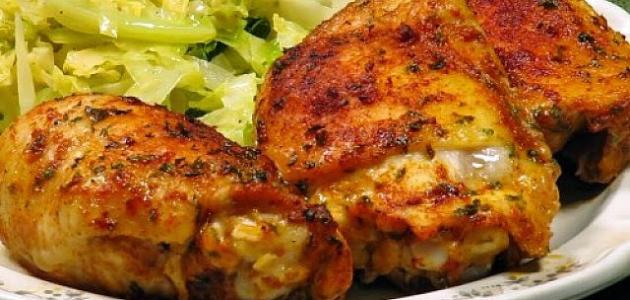 - ضعي الدّجاج في صينيّةٍ فيها القليل من الماء، واشويها لمدّةِ ساعةٍ ورُبع إلى ساعةٍ ونصف في فرنٍ ساخنٍ على حرارة مئةٍ وثمانين درجةٍ مئويّة.