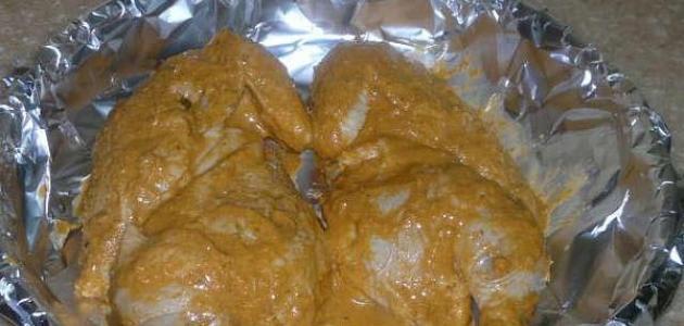 - ترك الدجاج منقوعاً بالتتبيلة لمدّة ساعتين.