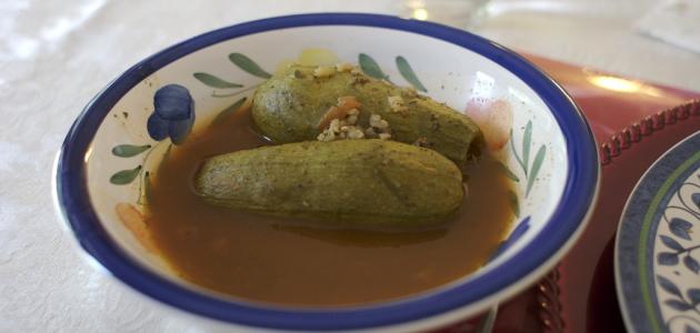 - قومي بحشو حبّات الكوسا باللّحم المفروم جيداً ، وقومي بصفّها في وعاءٍ مسطّح لحين إعداد اللّبن .