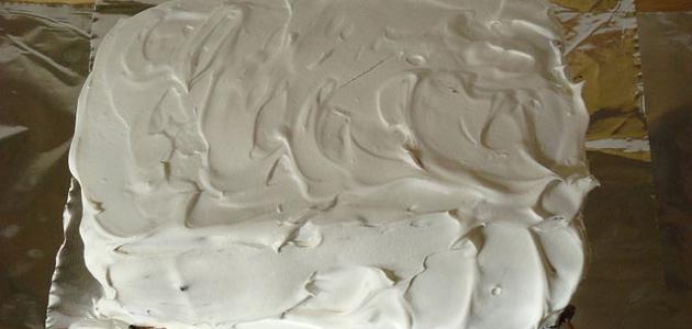 - اخفق مزيج الكريمة مجدداً وأضف ميرانج بياض البيض واخفقهم بلطف.