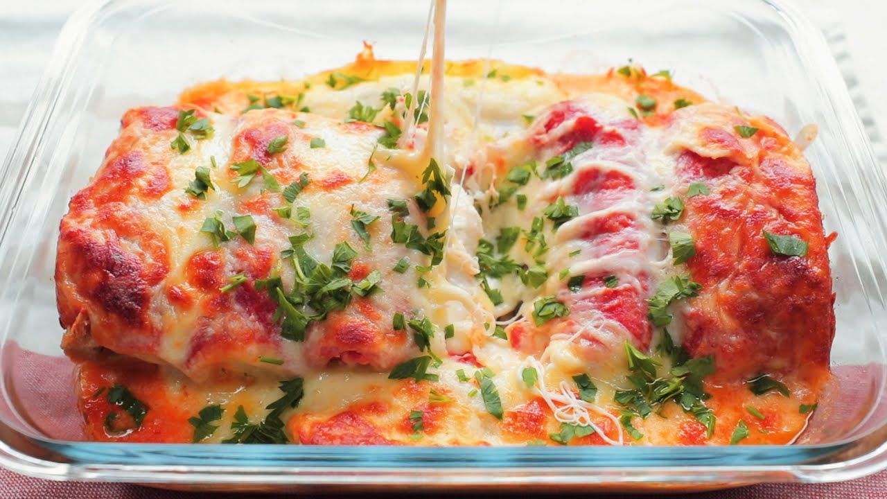 4- أسكبي القليل من صلصة الطماطم في قعر صينية فرن وصفّي فوقها طبقة من رولات التوست. زيدي طبقة من صلصة البشاميل ثمّ وزعي القليل من الجبن. اعيدي الكرة حتى انتهاء الكمية.