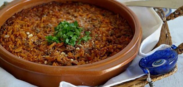 - يُضاف لسان العصفور إلى الخليط ويترك حتى يغلي، ثم يُنقل الخليط إلى قالب الطاجن.