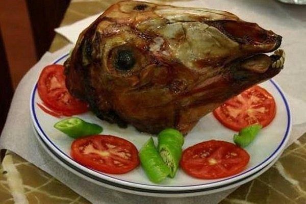 - يقدم رأس الخروف مع الأرز الأبيض والخبز ودقة الثوم