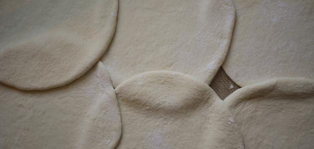 - ابدئي برقّ الأرغفة بالنّشابة بشكلٍ دائريّ بالسّمك الذي ترغبين به، وضعيها جانباً على فوطةٍ قطنيةٍ أخرى خاصةً لفرد العجين المرقوق.