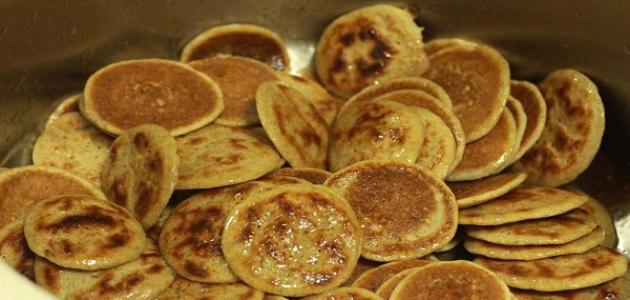 - نقوم بوضع العجينة في المقلاة على هيئة دوائر، يمكن التحكم بحجمها حسب الرغبة.