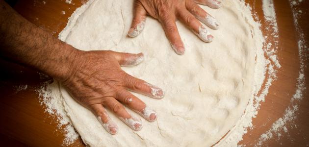 - نكور العجين ثمّ نغطيها جيداً، ونضعها في مكانٍ دافئ حتّى تتخمّر مدّة ساعة او حتّى يتضاعف حجمها، وتختلف مدّة التخمير باختلاف المكان الموضوع به العجين.
