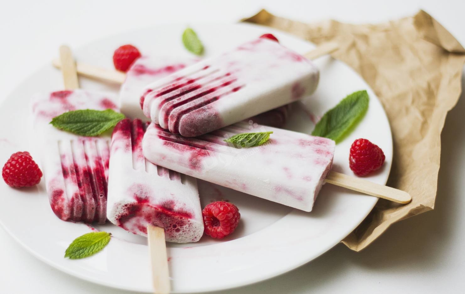 - يهرس الراسبيري مع 1/2 كوب زبادي و 2 ملعقة كبيرة سكر في محضر الطعام أو خلاط حتى يضبح ناعم و يذوب السكر ثم يصب الخليط في القوالب و يجمد لمدة 2 ساعة .