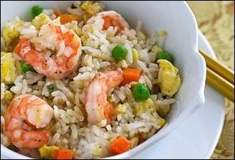 - في طبق التقديم نضع الأرز بالكاليماري ونضع عليه الجمبري .