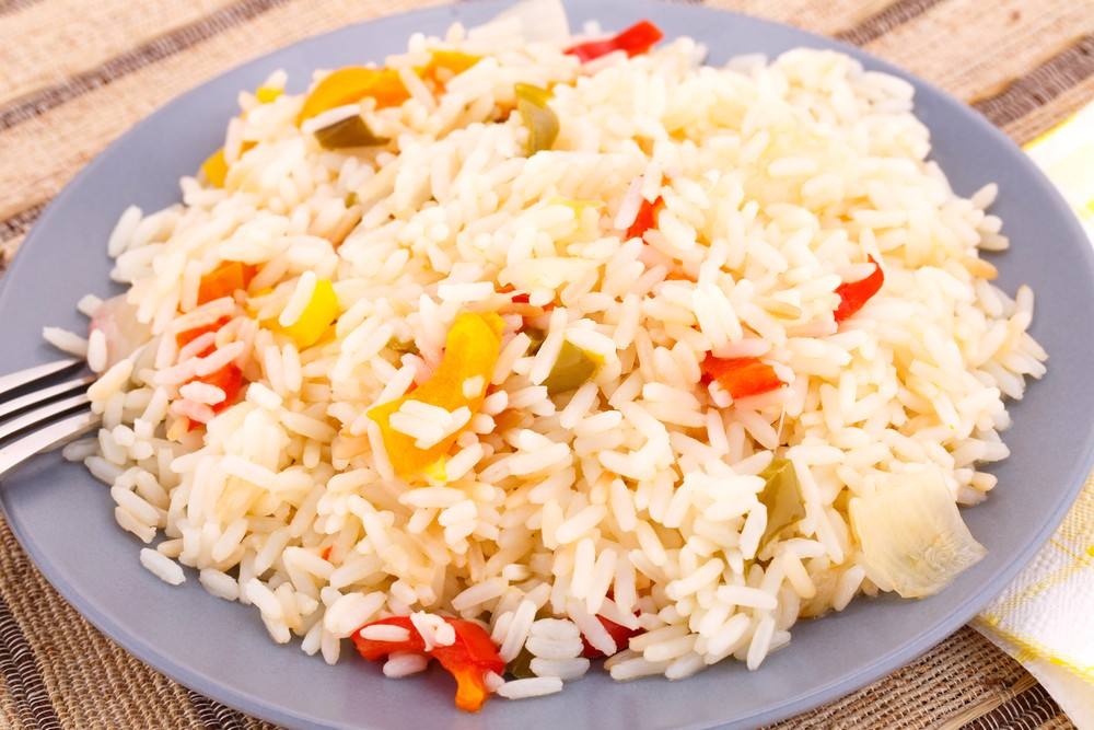 - يضاف الفلفل الملون، ويقلب مع الارز جيداً.