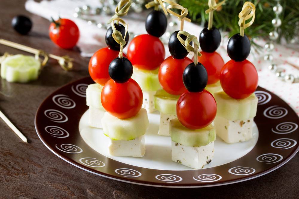 - يوضع مكعب من الجبنة في السيخ الخشبي، ثم توضع شريحة من الخيار.
