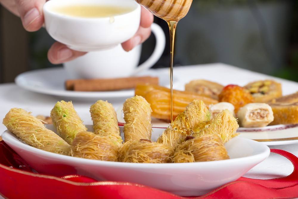 - يمكنك وضع القليل من الشربات على الوجه مع الفستق المجروش للتزيين ثم تقدم.