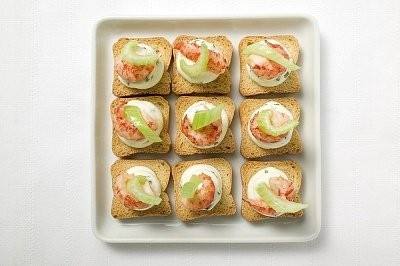 1. يتم رص شرائح التوست بجانب بعض في صينية مجهزه .