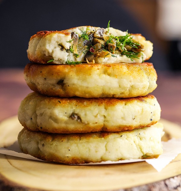أقراص البطاطس بالفطر من المقبلات اللذيذة وسهلة التحضير وهي عبارة عن بطاطا مسلوقة ومتبلة ومحشوة بالفطر ومحمرة بالزيت حتى تصبح ذهبية ومقرمشة .