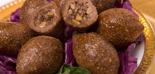 - 2 يُمزَج البرغل المجهّز مع لحم البقر المفروم، البصل، النعناع، الملح و التوابل في وعاء للخلط، تُفرَم المكوّنات ثلاث مرّات بواسطة آلة فرم اللحم الكهربائية (يضاف القليل من الماء البارد عند الحاجة للحصول على عجينة ناعمة)، يُغطّى المزيج و يوضع في البرّاد.