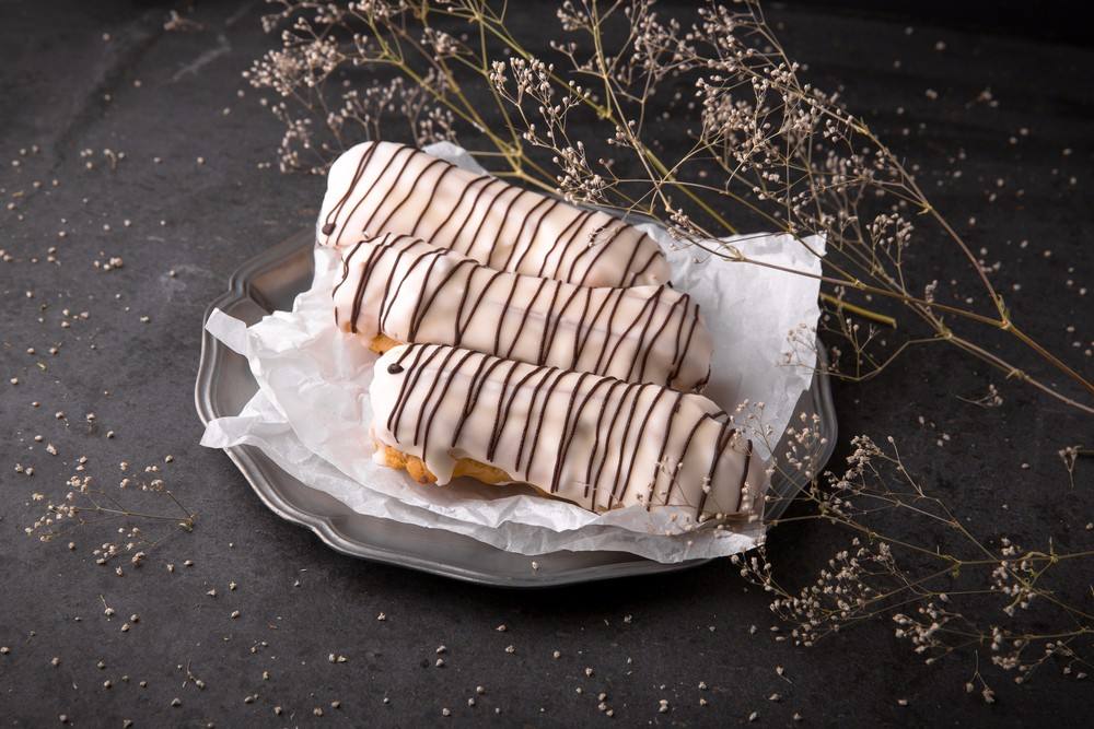 - يغمس أحد جوانبه في الشيكولاتة البيضاء، ثم يزين بالشيكولاتة البني بشكل غير منتظم.