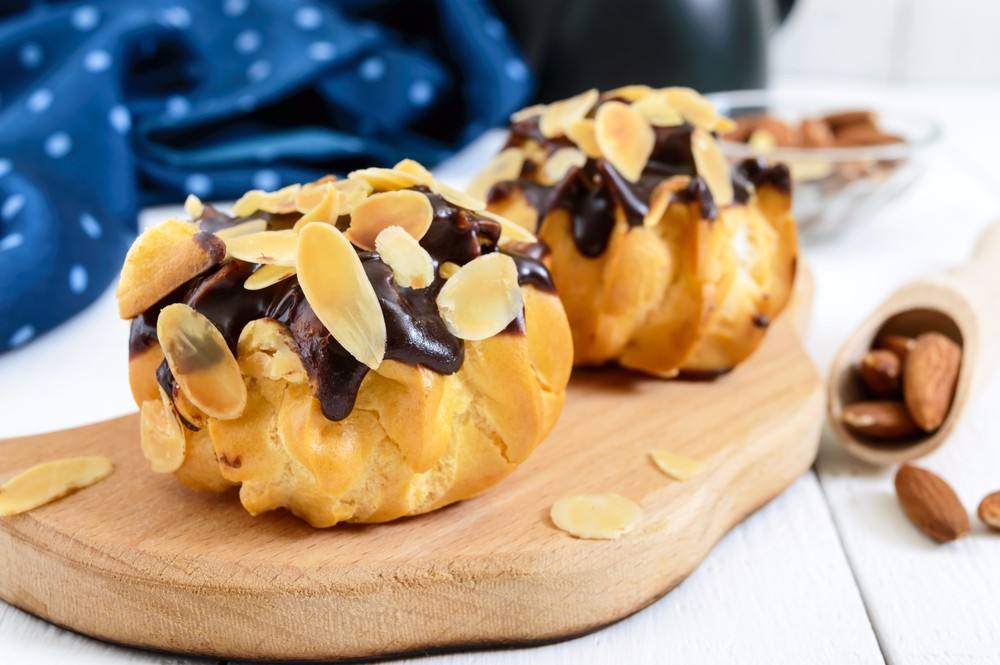 - يغمس النصف العلوي في الشيكولاتة، ويوزع فوقها شرائح اللوز.