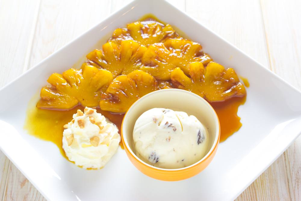 - 1/2 ثمرة أناناس مقشرة مقطعة نصفين بالطول وتقطع شرائح رفيعة