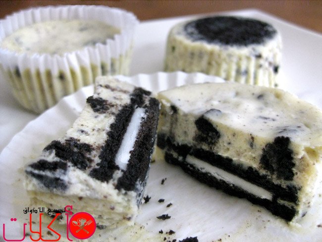 7- نخرج الكب كيك ونضعهم في البراد لمدة ساعة تقريبا ويصبح أوريو تشيز كيك جاهز للتقديم