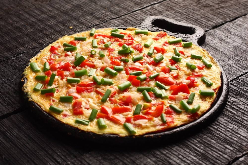 - يوضع البيض في المقلاة، ويوزع على كامل المقلاة.