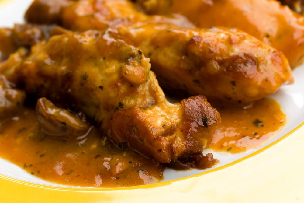- قدمي إسكالوب الدجاج بالصلصة مع الأرز البني بالبشاميل.