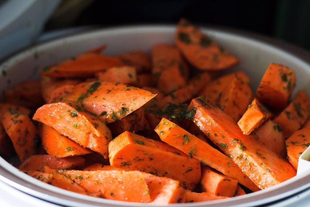 - اضيفي زيت الزيتون على البططاطس و قلبيها ثم تبليها بالملح و الفلفل.