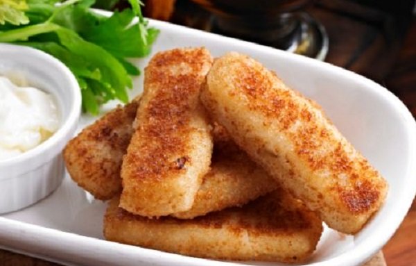 اصابع السمك المقلية المقرمشة ، طبق مغذي وغني بالحموض الدهنية أوميغا 3، أصابع من السمك المنقوع بخليط من المكونات والمغمس بعدها بالطحين، ثم الكعك المطحون مع الجبنة ثم البيض المخفوق، والمقلي بالزيت.