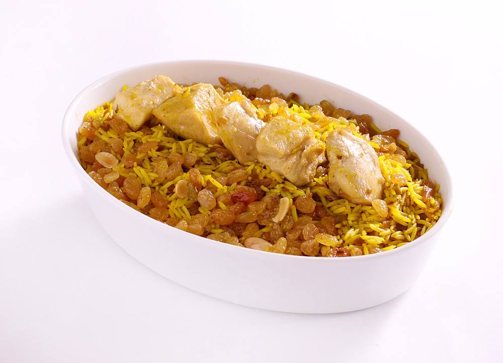 - قدمي الأرز البسمتي بقطع الدجاج و المكسرات مع الدجاج الكرسبي.