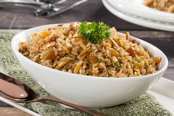 - يوضع قليل من السمن في مقلاة، ويضاف إليها المكسرات، وتقلب حتى تكتسب اللون الذهبي، ثم يضاف إليه الزبيب، ويقلب ثم يرفع من على النار.