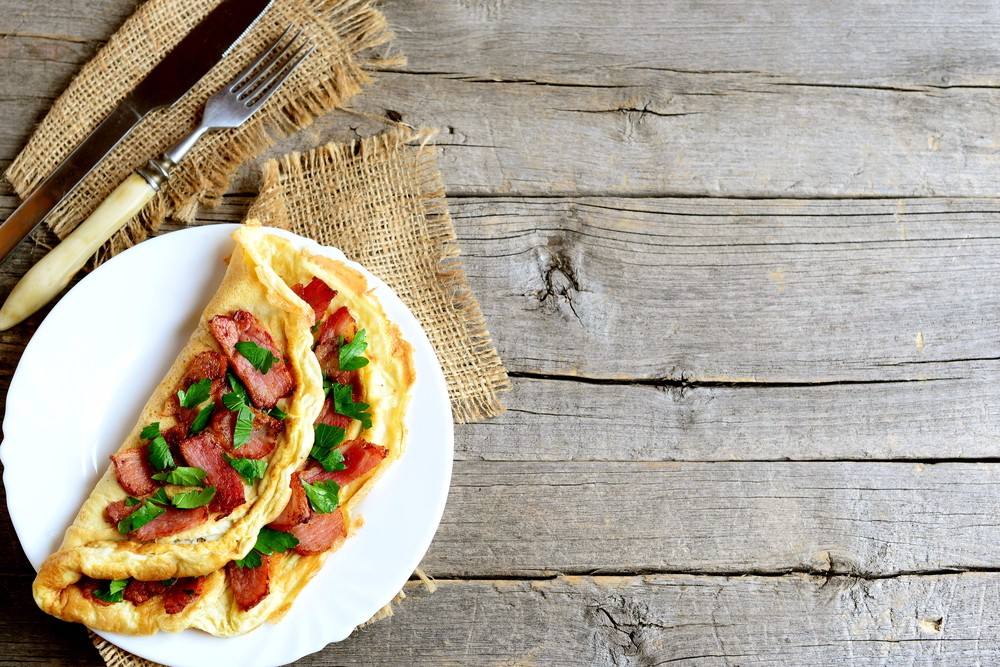 - زيني الأومليت بالبقدونس و قدمية مع الخبز المحمص.