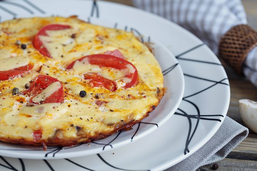- ضعي قطع الطماطم و البصل على البيض ثم اتركي المزيج حتى ينضج.