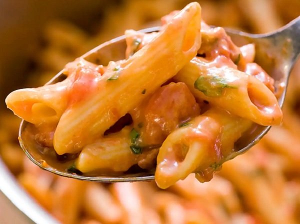الباستا بالخضار والصلصة الحمراء