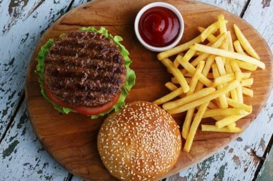 - قدميها مع الخبز والبطاطس والكاتشب .