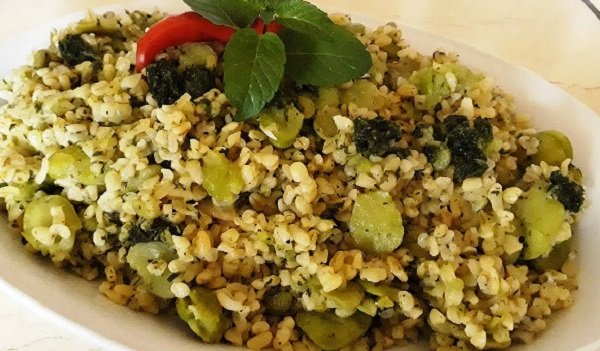 البرغل بالفول او مجدرة الفول و هو من الأطباق الشهية والصحية في المطبخ الشامي الذي يمتاز بسهولة إعداده وطعمه اللذيذ وقيمته الغذائية العالية إذ يحتوي البرغل على نسبة عالية من البروتين، كما أن هذه الوجبة العربية الأصيلة من الوجبات المناسبة للعزومات الكبيرة والتجمعات العائلية.