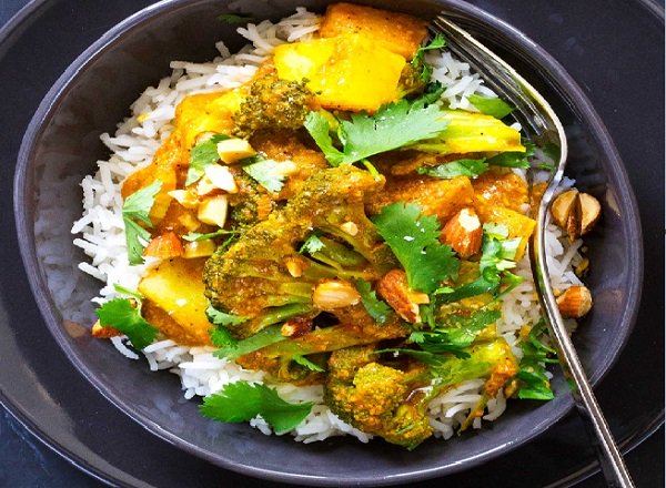 البروكلي مع البطاطس طبق هندي لمحبي الكاري، مع صلصة غنية بدون كريمة، البروكلي مع البطاطس حارة ولكنها ليست حارقة ولا ضارة، هذا الطبق الهندي المليء بالخضار لذيذ وشهي وسر القوام الكريمي للصلصة هو اللوز .