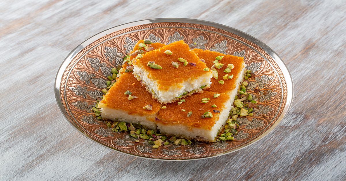 7- قدمي البسبوسة بالقشطة على سفرتك.