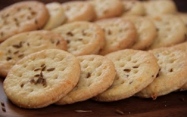 - ندهن قطع البسكويت بصفار البيض ونرشها بالسمسم وحبة البركة حسب الرغبة .