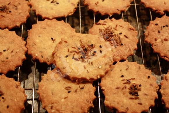 - ينخل الدقيق، ويوضع في وعاء، ويضاف إليه الملح، والكمون المطحون، والبيكينج باودر، وتخلط.