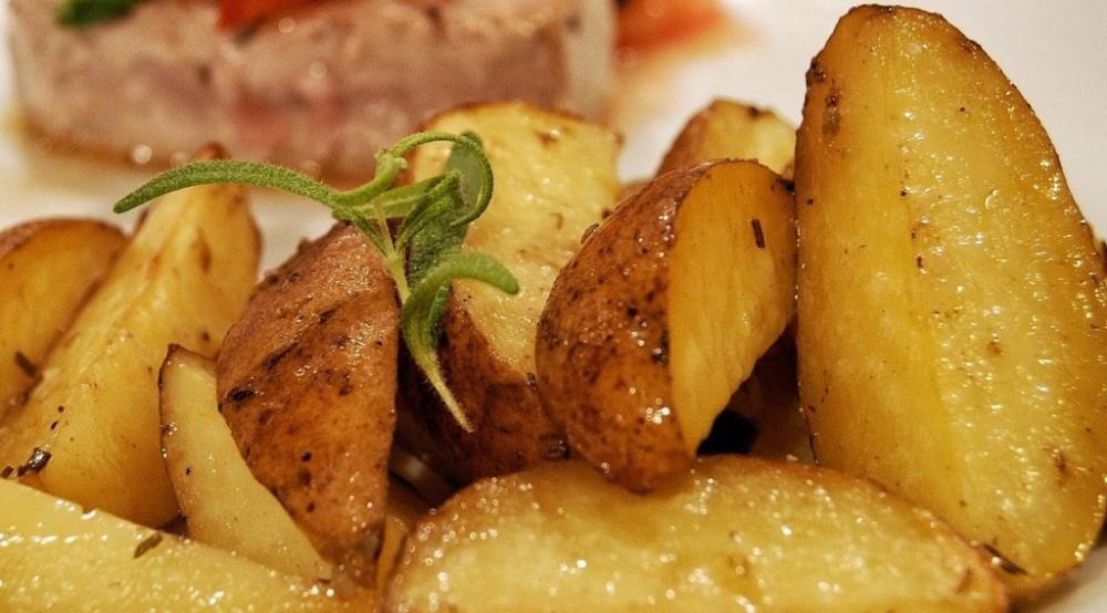 - ضعي قطع البطاطس في طبق التقديم و قدميها.