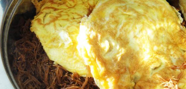 - لتحضير العجة: اخفق البيض ليصبح خليطاً، مع تتبيله بالملح، ثمّ صبّ البيض في مقلاة مسطحة مدهونة بالقليل من الزيت مع طهيه على حرارة متوسطة، ثمّ قلّب البيض وقدّمه فوق الشعيرية.