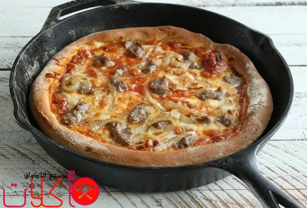 - نغطي المقلاة و نتركها على نار خفيفة لمدة 15 دقيقة حتى تنضج العجينة و تذوب الجبنة و يمكن وضعها في الفرن