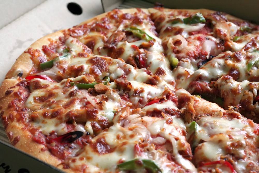 - قومي بتقطيع البيتزا الى شرائح متساوية الحجم.