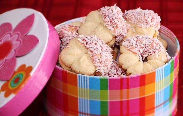 - ضعي طرف البيتي فور في المربى ثم ضعيه في جوز الهند.