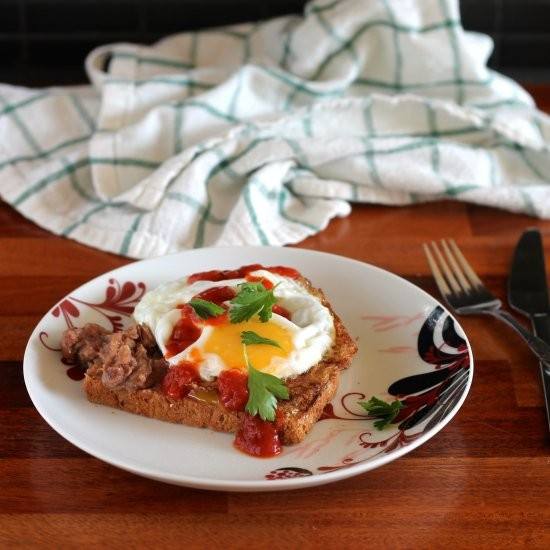 8. يدهن التوست بصوص الطماطم، ويوضع عليه البيض.