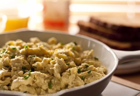 - ضعي مزيج البيض في المقلاة لينضج مع الإستمرار في التقليب.
