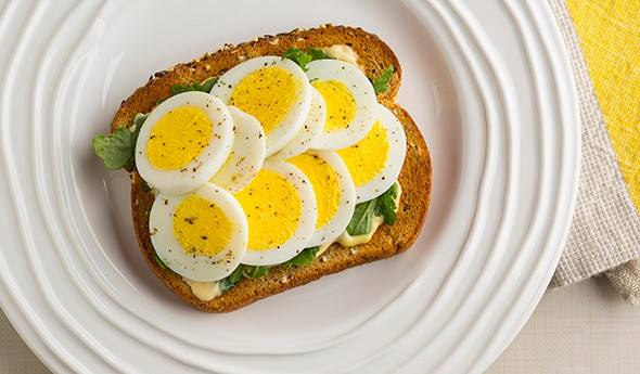 - ضعي حلقات البيض فوق التوست بالتساوي.