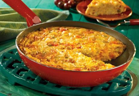 - اخفقي مكونات البولة جيدا ثم ضعي المزيج فوق البطاطس في المقلاة و قلبي لمدة 3 دقائق.