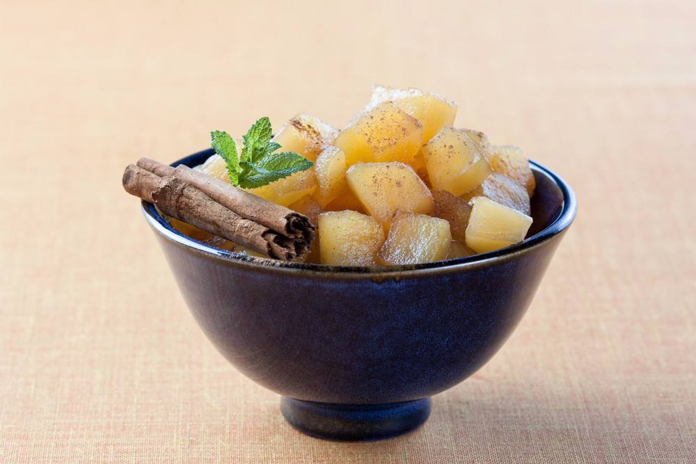 - اذيبي النشا في الماء ثم ضعيها على التفاح و قلبي.