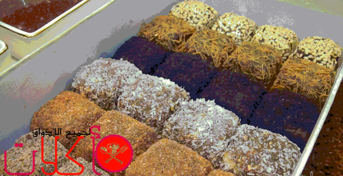 3-نأخذ كل عجينة في القالب ونغمسها مرة في السمسم وجوز الهند وبسكويت الشاي والاوريو
