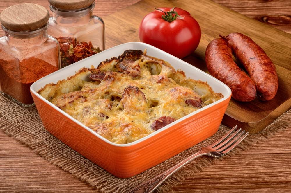 7. قدمي التوست بالسوسيس و الجبن الشيدر مع البطاطس المحمرة.